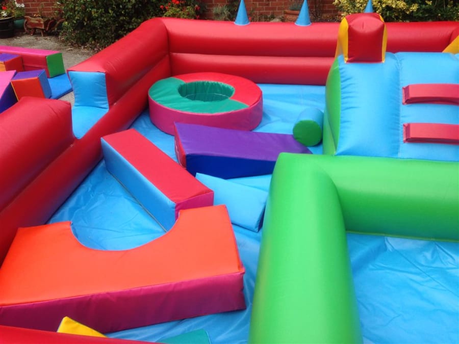 This soft play centre is 11ft x 14ft in size. It comprises a small inflated slide, and a host of soft play shapes. It provides hours of fun for babies and toddlers, and even has jets of air blowing from the inflated wall , kids have hours of fun balancing the balls on the jets of air!