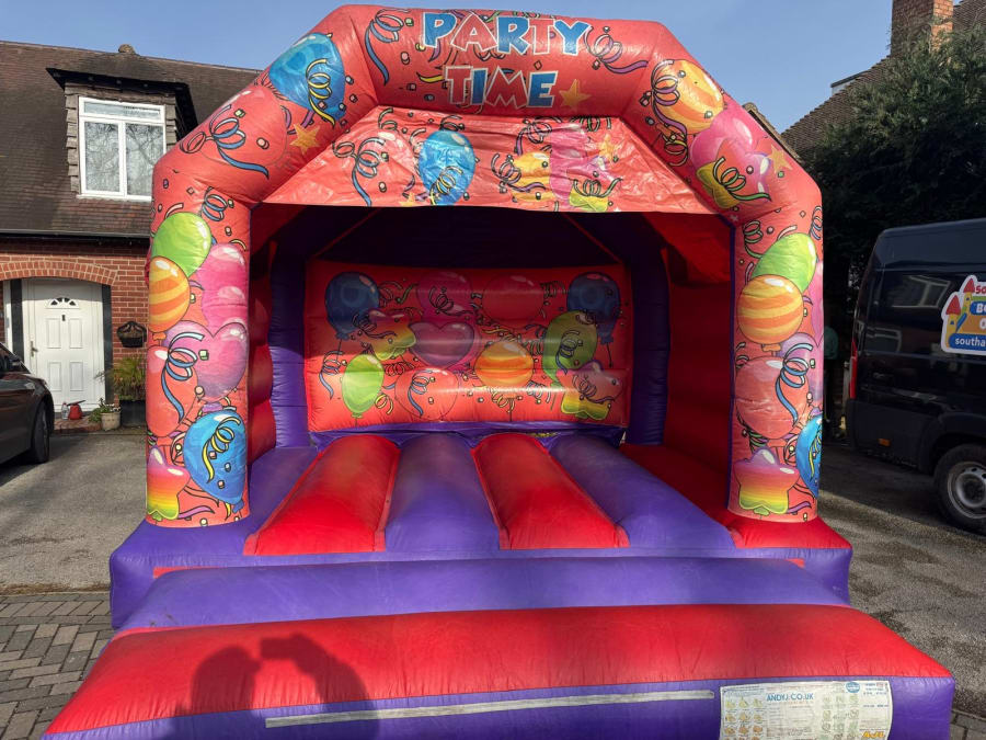 This colourful party themed castle is perfect for any occasion. It comes with a built in cover for showers and shade. It’s 12 x 12 ft in size and can be used by children up to 11 years.