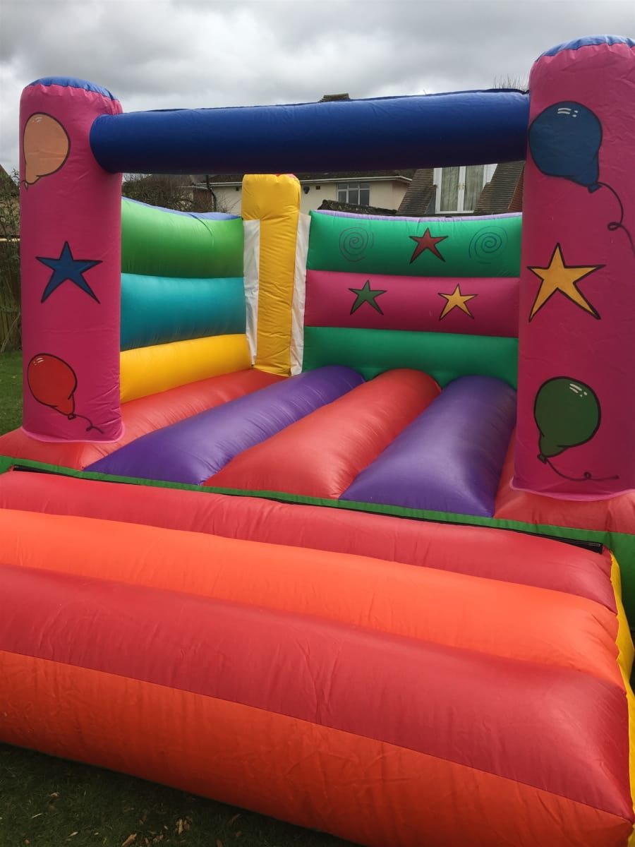 This bouncy castle is 12 x 14 ft in size, it is ideal for hire inside hires as the height of this castle is only 8ft! It is multi coloured and has balloon and stars artwork, ideal for any occasion! It is suite for use by children up to the age of 11 years.