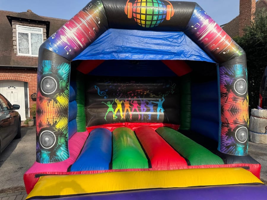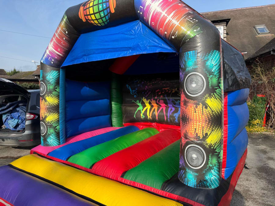 Disco ready bouncy castle with Disco artwork. Can be hired with or without speaker and lights. This unit is perfect for all party needs, can be hired overnight to make full use of the Disco lights! Size is 12 x 12 ft and is suitable for children up to 11 years.