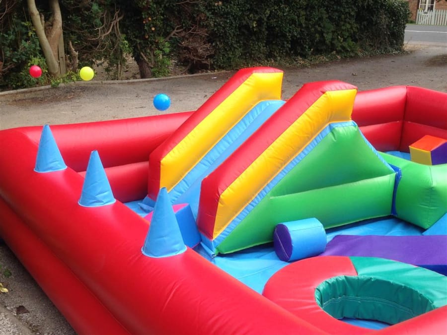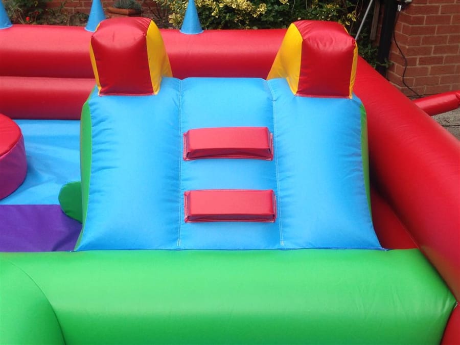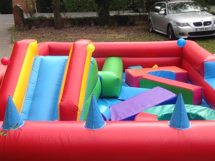 This soft play centre is 11ft x 14ft in size. It comprises a small inflated slide, and a host of soft play shapes. It provides hours of fun for babies and toddlers, and even has jets of air blowing from the inflated wall , kids have hours of fun balancing the balls on the jets of air!