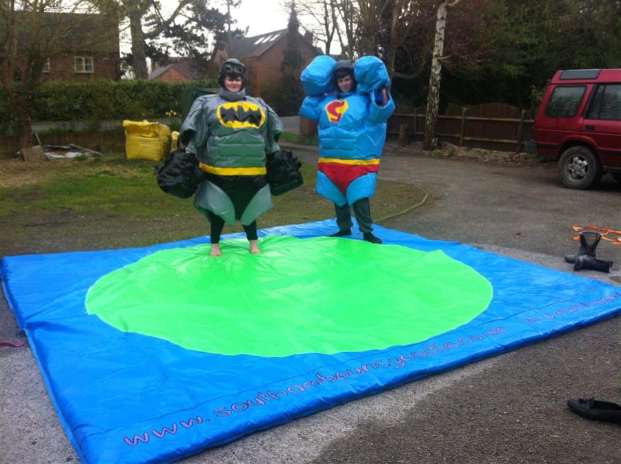 These adult/children sumo suits are a must have for any party! They come complete with helmet, mits and neckbrace. The mat is 12 x 12 ft in size.